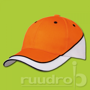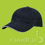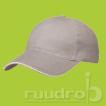 Deze katoenen pet is gemaakt van zwaar twill katoen. De klep bestaat uit twee kleuren met hier tussen een gekleurd biesje. De cap met een amerikaanse pasvorm kan in grote versteld worden door een metalen clip aan de achterzijde. Al onze petten zijn geschikt om te borduren.